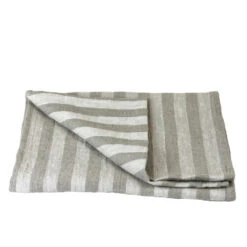 Linen Bath Towel – Luxury Thick Stonewashed – Natural Stripes