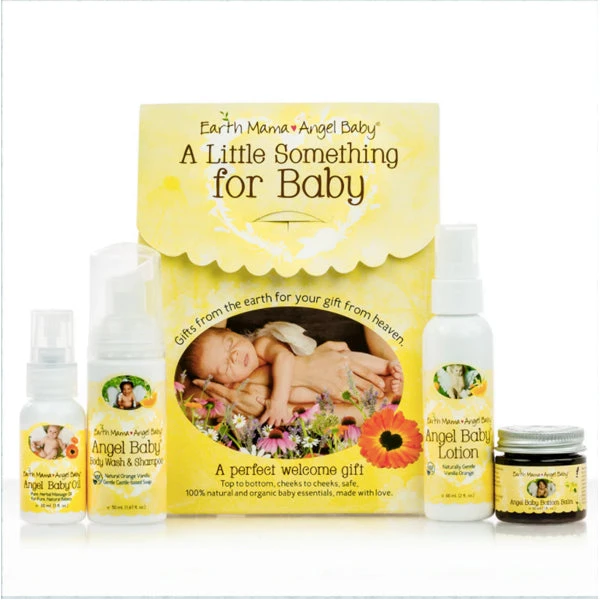 Say hello to the perfect little gift for the perfect little baby in your life! Earth Mama’s A Little Something for Baby Bath Set has all the on-the-go sized bath essentials your little one needs to stay clean and happy, naturally. Gentle castile oil cleanses in the Angel Baby Body Wash and Shampoo, paired with soothing vanilla orange Angel Baby Lotion for moisture after the bath. Plus, it comes with Angel Baby Bottom Balm diaper cream, and Angel Baby Oil for dry skin and infant massage. This kit is the perfect all-natural welcome for any little one!
