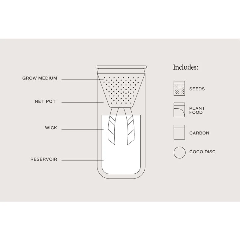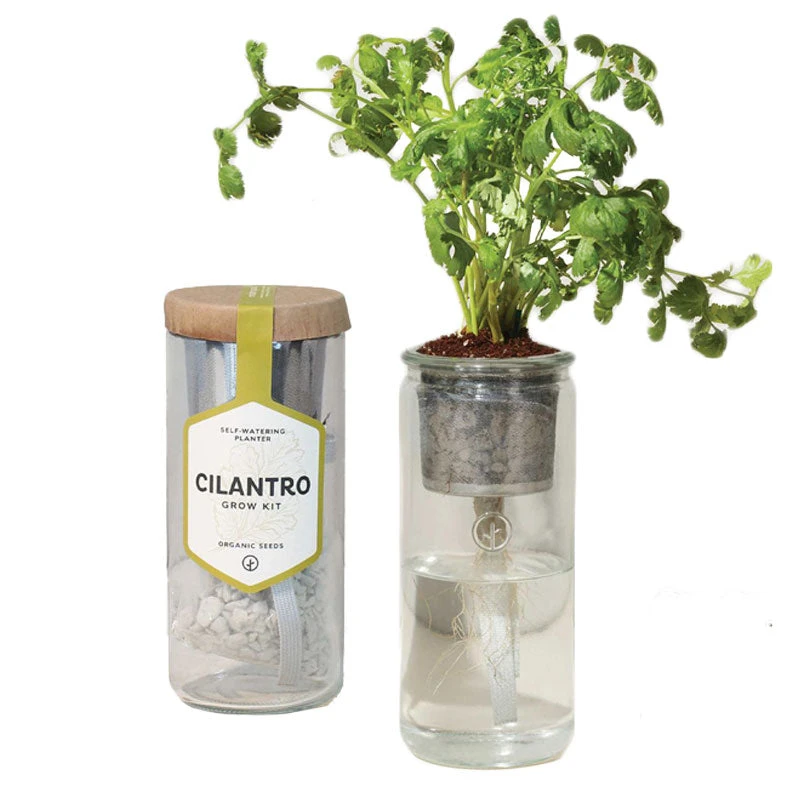 Grow an herb garden right in your very own kitchen with the All-in-One Hydroponic Planter from Modern Sprout! Featuring a self-watering construction that uses recycled glass beads in place of soil and a ready-to-grow seed packet, this kit has everything you need to start your indoor garden. Plus, the hydroponic โwickingโ design helps plants get as much water as they need, when they need it. No more overwatering and no more soil spills โ simply add water and watch your herbs grow!