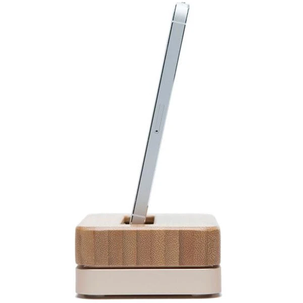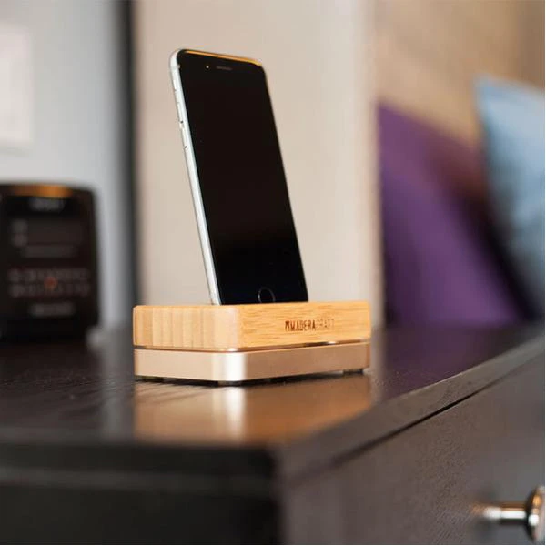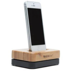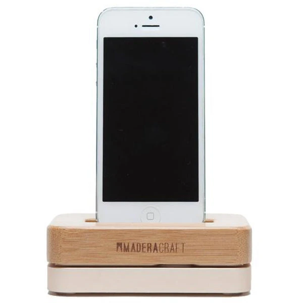 Charge, view, and enjoy your smartphone in a whole new light with Maderacraft’s Bamboo iPhone Docking Station. Designed to be a perfect fit with the Apple iPhone, this handcrafted and handsanded docking station comes with adapters for both iPhone 4/4s, 5/5s, 6/6s and 7 charger slots. Your phone snaps easily in and out of the dock for quick access, while the laser etched base has a custom fitment for hidden charging wire. Made your office desk a work of art with this funky docking station!