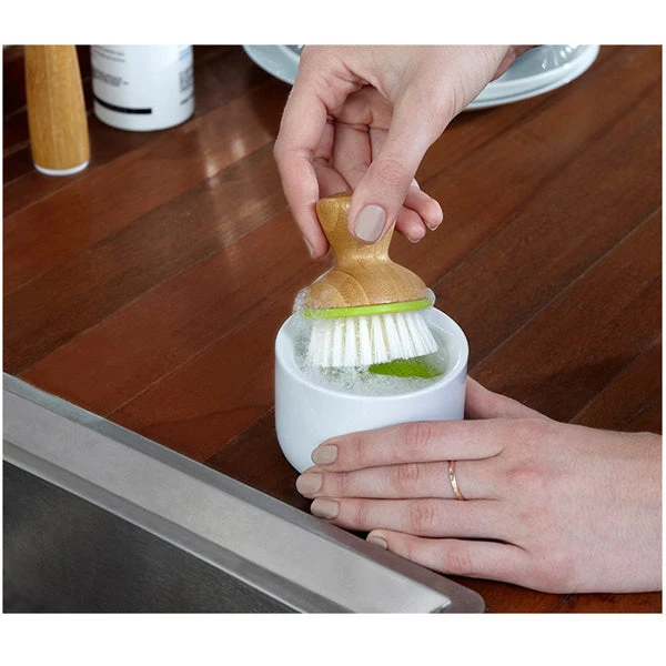Small but mighty, the Bubble Up Full Circle Dish Brush Set makes dish time easy, creating lush suds with ease. It’s ergonomic bamboo handle gets into the nooks and crannies of dirty pans, with strong recycled plastic bristles for caked on grease. Prevent bacteria build-up by putting the brush in its ceramic base (it doubles as a spring-loaded soap dispenser!) Say goodbye to sinks filled with dirty suds, and hello to the clean and simple way to conquer dish time.