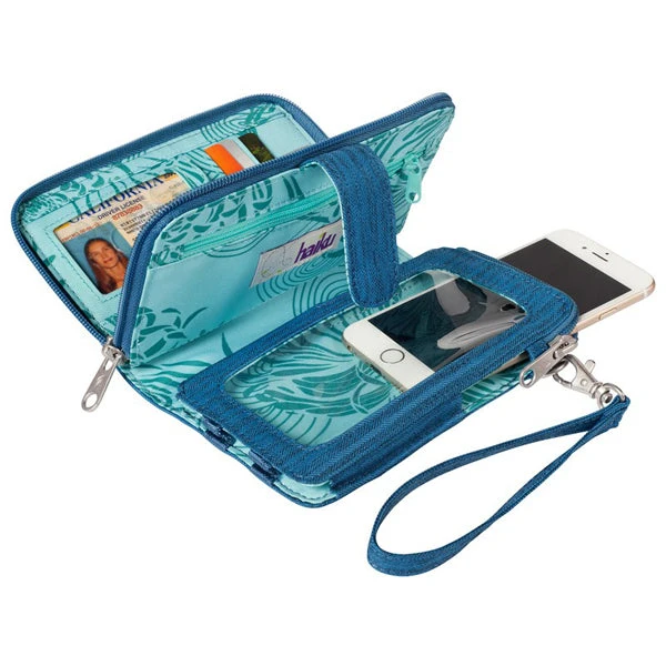 Never get weighed down keeping track of your phone and wallet again thanks to the dual-action power of Haiku’s Cadence Phone Wallet. Designed to follow the rhythm of your life, this crossbody wristlet has enough space for your phone, plus 5 cards, all protected with RFID-blocking technology. The phone zipper compartment features a clear window for smartphone navigation, while the exterior magnetic tab closure keeps everything snug and secure. Rock it as a crossbody, a clutch, or use the wrist strap for 3 unique looks!