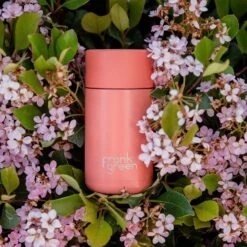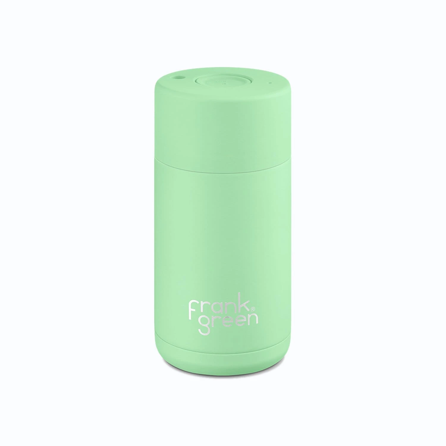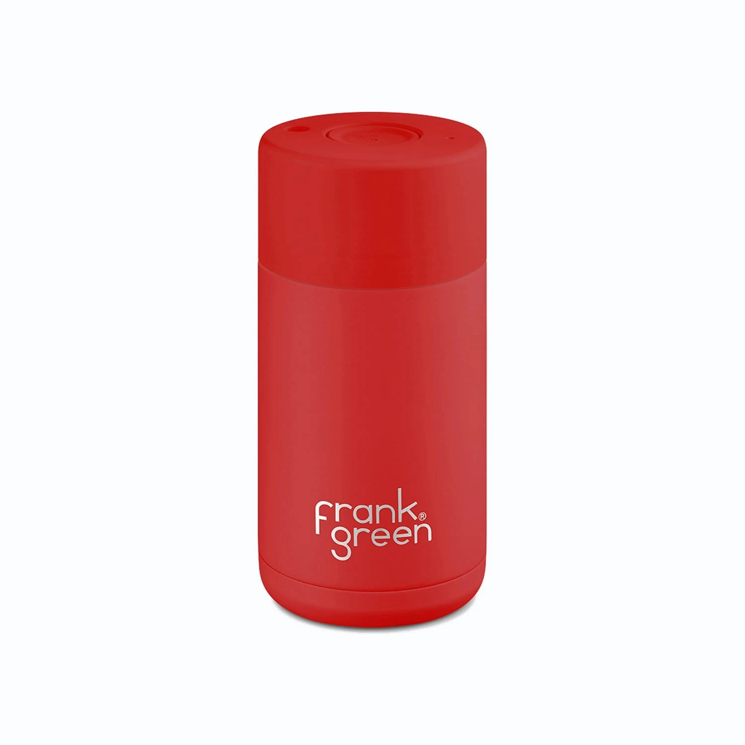 Curved to fit comfortably in your hand, each Frank Green mug is one-of-a-kind. They are made of ceramic and stainless steel and each mug is triple-walled and vacuum insulated, keeping your coffee or tea hot or cold for much longer than your typical cup. Frank Green’sย one-handed push-button design is built to help retain the temperature of your drinks and to create a leak-proof seal, making it perfect to toss in your bag on-the-go.