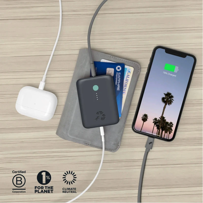Stay charged up on-the-go with the Champ 10K Portable Charger from Nimble! Featuring a high-density compact battery that delivers up to 18W of fast charging power, the Champ is the perfect compact, high-powered charger to keep in your suitcase or backpack for when you need it. Not only is this charger made with housing featuring RePlayโข Certified Recycled Plastic, it’s also Climate Neutral Certified and supports 1% for the Planet!