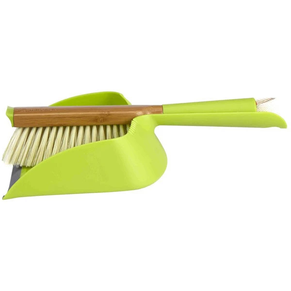 Tired of those annoying dirt lines left behind by traditional dustpans? With the Clean Team Dustpan and Brush Set by Full Circle all you’ll be able to see is squeaky clean floors, thanks to the unique soft dustpan edge made for messes. With a bamboo brush that locks into the recycled plastic dustpan, and a built-in scraper and comb, your brush will stay clean and tidy (just like your house!). When you’re done, simply hang or stand the dust pan for out-of-view storage.