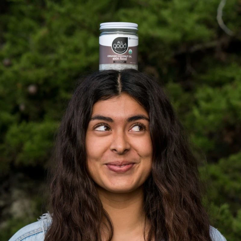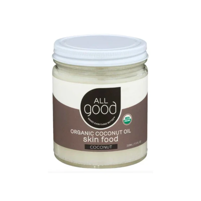 All Good Coconut oil is proof Mother Nature wants us to be happy. Skin food is organic coconut oil that leaves you moisturized but not greasy. Use it for moisturizing, hair care, or a make-up remover!