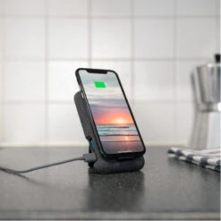 Charge your devices wirelessly with the Convertable Wireless Charging Pad Stand from Nimble! Made from eco-friendly materials like fabric from recycled water bottles & organic hemp, and a bioplastic interior, this device charges newer iPhones, Samsungs, Androids, AirPods (2nd Generation) and Google Pixel 3 on contact. Advanced technology and built in thermal management means safe and efficient charging without a noisy fan! The stand feature allows you to charge laying flat or standing up, and there’s an extra port to charge a second device. Plus, Nimble donates 1% of sales to environmental non-profits, and sends you an envelope to recycle 1 pound of e-waste for every product purchased!