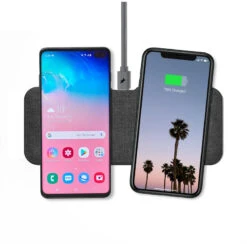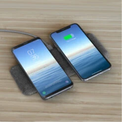 Charge your devices wirelessly with the Dual Wireless Charging Pad from Nimble! Made from eco-friendly materials like fabric from recycled water bottles & organic hemp, and a bioplastic interior, this device charges newer iPhones, Samsungs, Androids, AirPods (2nd Generation) and Google Pixel 3 on contact. Advanced technology and built in thermal management means safe and efficient charging without a noisy fan! Plus, Nimble donates 1% of sales to environmental non-profits, and sends you an envelope to recycle 1 pound of e-waste for every product purchased!