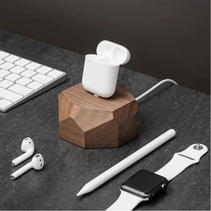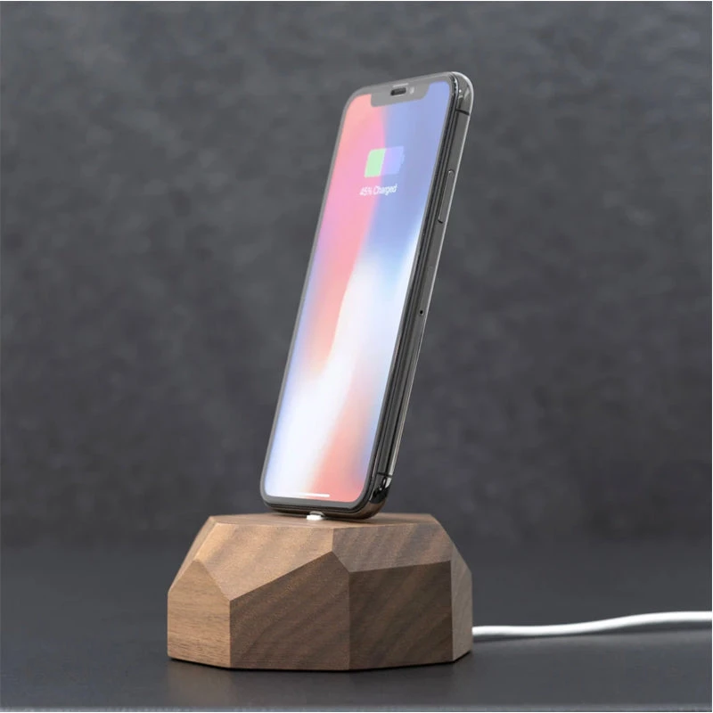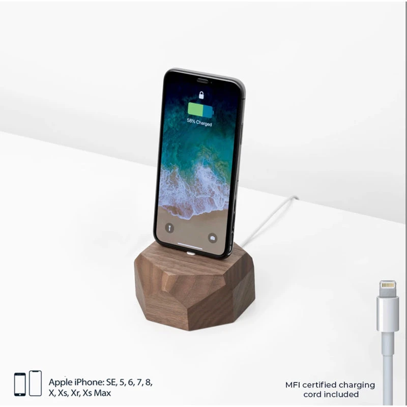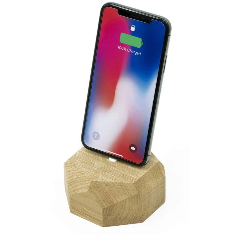 Keep your desk organized, and your space beautiful, with the Geometric Wooden Phone Charging Dock from Oakywood! Handcrafted from FSC Certified solid oak or walnut wood, this iPhone, AirPod, or Android charging dock keeps your tech securely in place and easy to locate โ all while charging it so you’re ready to grab it and go. There is micro-suction tape technology for your devices to make it easy to put tech on and off the dock with just one hand. Handpolished to have a natural wood shine, with a classic geometric look, it also comes with a charging cable and is compatible with almost all phones cases. Plus, for every order, Oakywood will plant 1 tree!