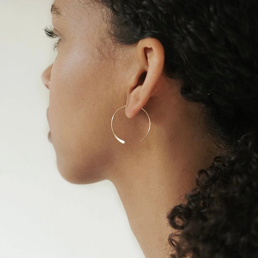 Add a touch of glimmer to your look with the Gold Luna Medium Hoops by Baleen! Made from recycled metals, these ultra-light, 14K Gold-fill hoops are hand-formed and finished in Seattle, WA and feature a delicate, hammered end. A twist on classic gold hoops, these earrings are the perfect addition to any outfit! Plus, the Baleen production studio is a zero-waste facility, so you can feel good about adding this piece to your jewelry box without adding any trash to landfill.
