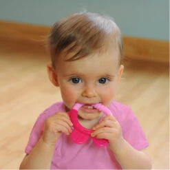 Is it a blankie? Is it a teething ring? Get the best of both worlds with I play., Inc’s Organic Cotton Blankie + Teething Ring Set! The soft organic cotton muslin blankie is great for cuddling with or chewing on, while the silicone teething ring massages gums and promotes healthy oral development. The soft silicone teething material eases pain, and features several textures and shapes for different stages of teething. Plus, you can wet and chill the blanket knots for extra sensitive gum relief!