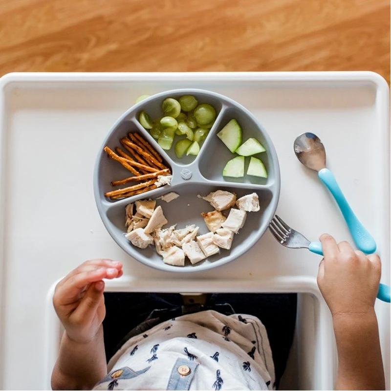 Teach your little one that exploring new foods is fun with the Silicone Learning Plate from green sprouts! Made from naturally non-toxic silicone that’s BPA and PVC-free, this slip-resistant baby plate features four sections to help separate and measure healthy portions for more balanced meals. The suction cup base stops major messes but features an easy release tap for parents. Great for ages 12 months and up, this silicone plate also encourages independent eating skills!