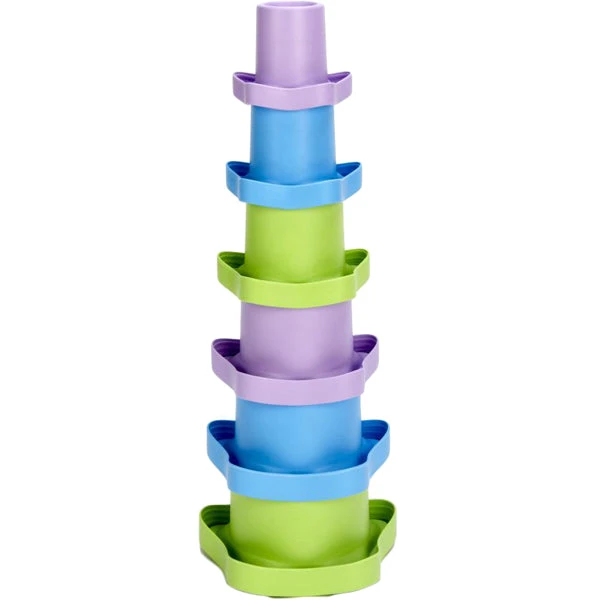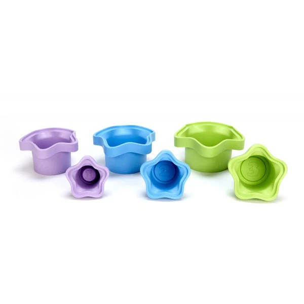 Six cups, dozens of playtime possibilities. Perfect for bath time or time outside, Green Toy’s Stacking Cups scoop and pour water, building towers and sandcastles, and are sortable for nesting! Each 100% recycled plastic cup is numbered on the bottom from 1 to 6 and is volumetrically accurate. For example, if you fill cups 1 and 2, they will equal the volume of cup 3! Teach your little one valuable motor skills and numbers with these non-toxic stacking game.