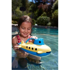 Looking for a nautical bath time journey? The Submarine Bath Toy by Green Toys is ready to go! Made in the USA from 100% recycled plastic from milk jugs, this non-toxic toy navigates bathtubs and pools with ease thanks to its spinning rear propeller and flat bottom for added stability. The cabin can be opened for easy cleaning, with a wide-mouth opening for plenty of scoop-and-pour fun!