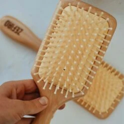 Vegan and plastic-free, the Handcrafted Beechwood Hair Brush from Zefiro detangles and smooths hair with ease while massaging the scalp. While most hairbrushes are made of synthetic materials and take hundreds of years to break down, this wooden brush is fully compostable at the end of its life. Crafted masterfully, this all-natural hair brush is made with a smooth beechwood handle with durable bamboo bristles that sit on a natural rubber pad.