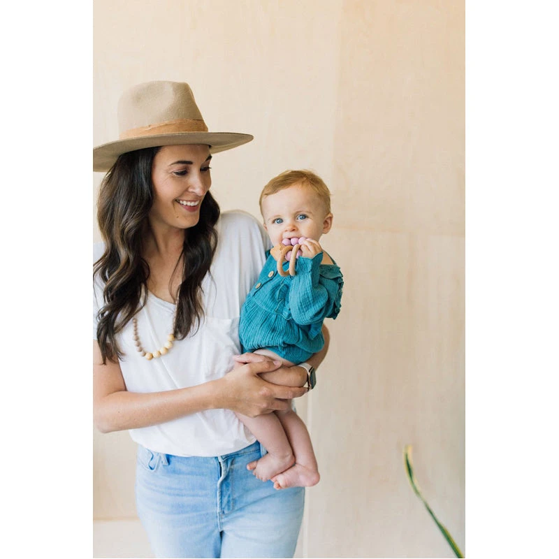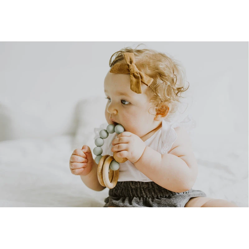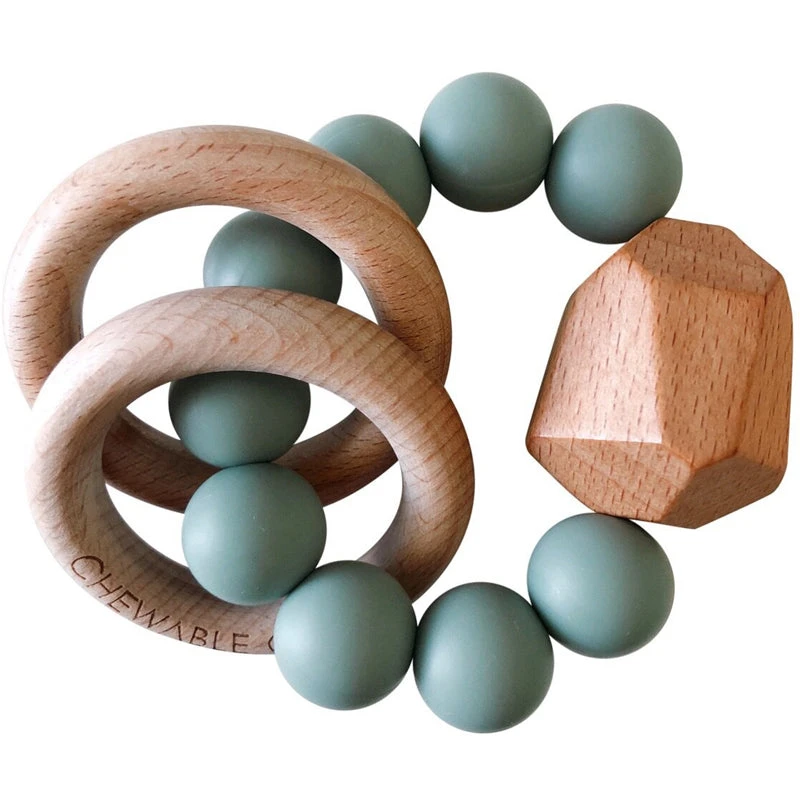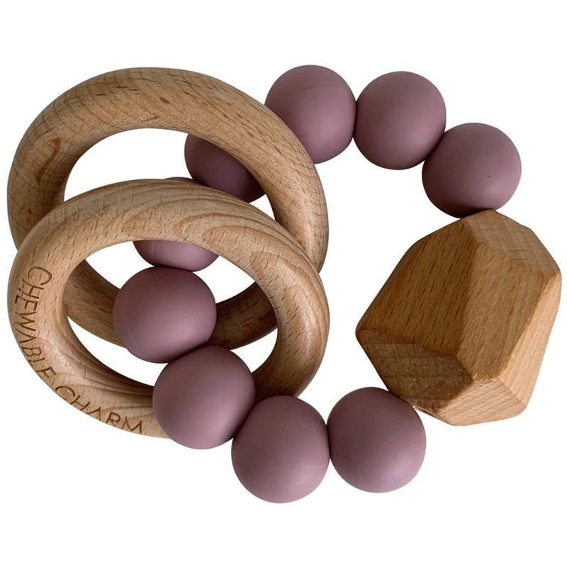 Tackle teething the non-toxic way with the Hayes Silicone Beaded Teething Ring by Chewable Charms! Made from a unique combination of eco-friendly organic Maple wood and naturally non-toxic silicone, this teething toy keeps your little one entertained with a variety of textures and shapes for them to play with while they chew and teethe. BPA free and easy to clean, this teething ring is suitable for kids ages 3 months +, but parent supervision is recommended at all times. Plus, it’s sized to fit conveniently in your pocket โ making it perfect for parents!