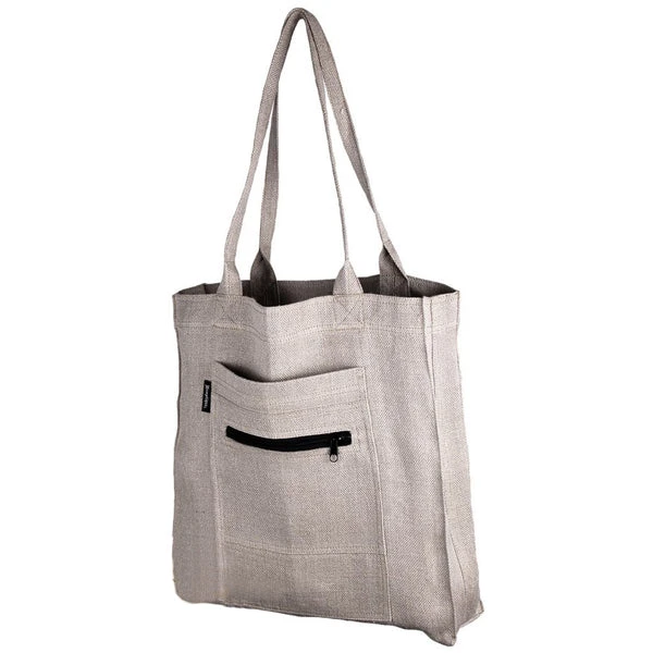 Show off this sustainable bag made from renewable hemp as you stroll down the farmers market aisle! Hemptique’s market hemp grocery bag gives you plenty of room for your fruits and veggies. Plus, the two outer pockets make it easy to grab your phone or keys when you’re headed to the car (or bus)! Don’t worry about overloading this bagโhemp is a naturally durable material that will keep your avocados from falling all over the parking lot!