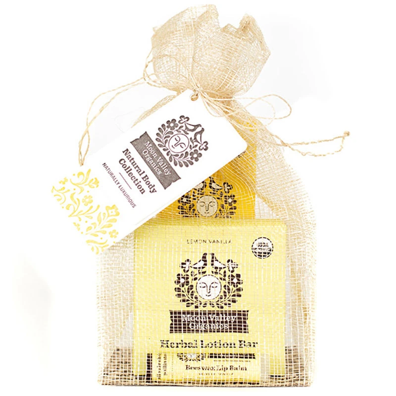 You only have one body โ so treat it well with help from the Herbal Healing Organic Healing Salve Bundle from Moon Valley Organics! This essential set includes a Herbal Healing Cream, Organic Lemon Vanilla Lotion Bar, and a Vanilla Lemon Beeswax Lip Balm, all made from certified organic ingredients that contain no added chemicals or fragrances. Cruelty-free, non-GMO, non-toxic, and safe for skin of all ages, this set is great for anyone who could use a little pick-me-up thanks to the Herbal Healing Cream that works to heal minor burns, cuts, and broken skin. Packaged in a 100% biodegradable pouch, this organic skin care set is perfect as a “feel better” gift, or to treat yourself!
