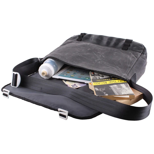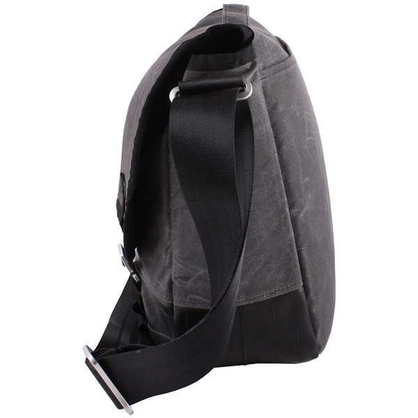 This Alchemy Goods Waxed Canvas messenger bag boasts a sleek, urban style that ages beautifully no matter where you take it! Its waxed canvas and recycled inner-tube exterior covers soft padding that will shelter your laptop and other personal items. Sling the Jefferson Messenger Bag over your shoulder or carry it by the short hand strap to grab it and go! Simply flip the top over the bag and clip the straps together to keep your stuff secure on your way home.