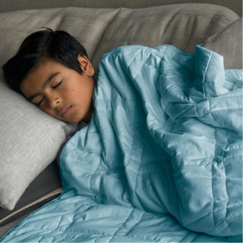 Ease worries and promote a restful sleep with the Kid’s Plant-Dyed Weighted Blanket by Baloo! This sweet blanket molds to the body like a gentle hug, creating even pressure called Deep Pressure Touch that relaxes the nervous system, increases serotonin, and reduces stress hormones. Made from a chemical-free cotton interior and exterior, with glass microbeads for weight, this is the only weighted blanket on the market with no polyester. It is dyed with non-toxic vegetable-based dyes like indigo, mahogany leaves, bamboo, and clover. It doesn’t trap heat, making it cool enough to use year-round. Plus, it has a tight quilted pattern that ensures there is no bunching or pooling of the microbeads!