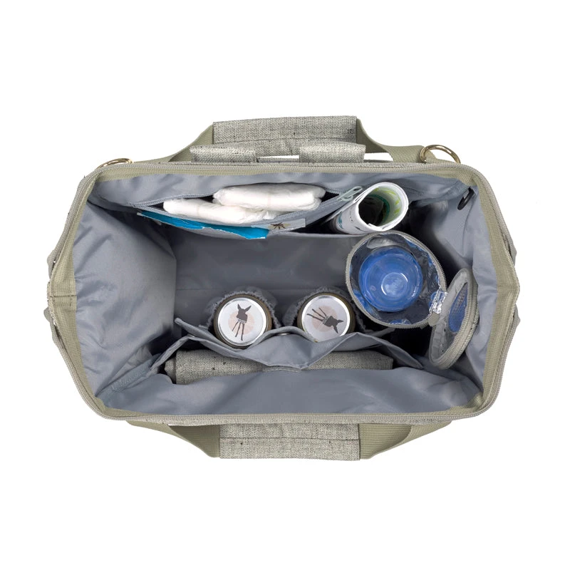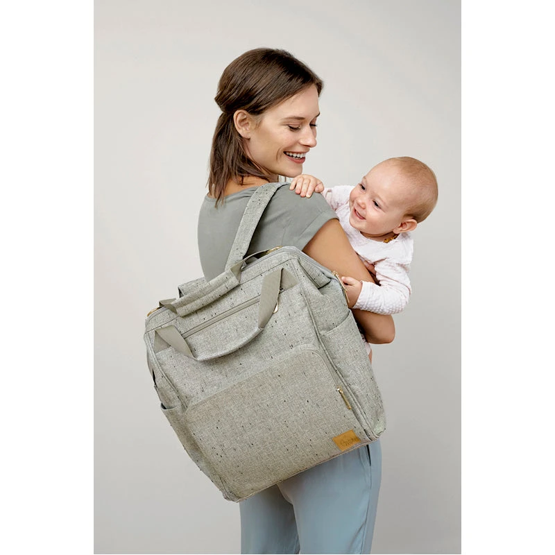 Not too big, not too small, the Goldie Diaper Backpack from Lässig is the essential baby bag for any parent! Made from eco-friendly recycled polyester from post-consumer plastics, this durable bag features a structured, non-collapsing top and clearly divided interior compartments to make organization easy. It also includes a moisture-resistant baby-changing mat, an insulated removable bottle holder, a removable jar holder, an integrated cell phone pocket, a key ring, moisture resistant wet pocket, and zip pouch. Plus, this diaper bag functions as a backpack, shoulder bag, and stroller bag so you have options for your day!