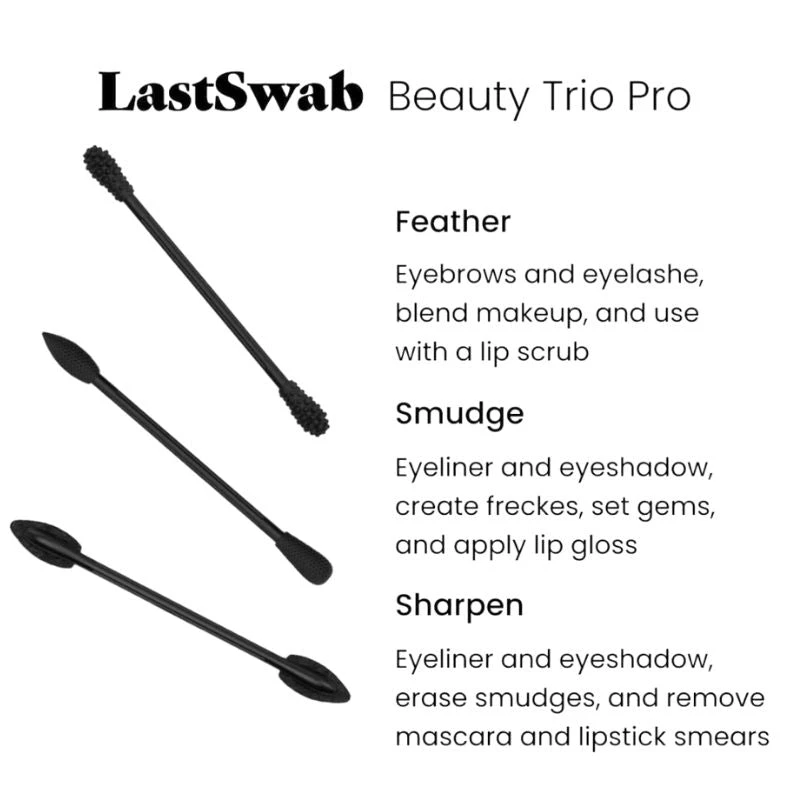 LastSwab Beauty Trio Pro is the ultimate kit to add to the makeup toolbox! The kit contains the innovative LastSwab Sharpen Pro, with soft tips that can remove tough makeup. The two tips are washable and interchangeable, and four extra tips are included. It also includes an improved version of LastSwab Beauty Pro, our favourite tool for smudging and touch-ups. Make the switch from single-use alternatives with LastSwab from LastObject!