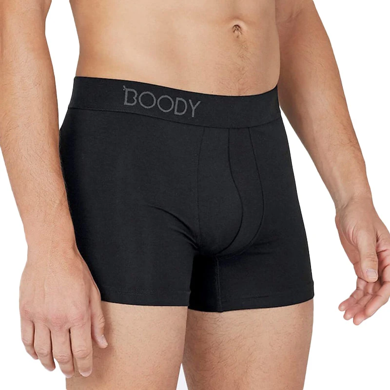 Classic boxers, with an eco-friendly upgrade! The Men’s Bamboo Boxers from Boody are made from organically-grown and naturally renewable bamboo. Lightweight and breathable, these boxers feature a splash of spandex for a stretchy fit. They have a double layer pouch for optimal support and flat offset side seams for extra comfort. Great for everyday-wear or for an active adventure!