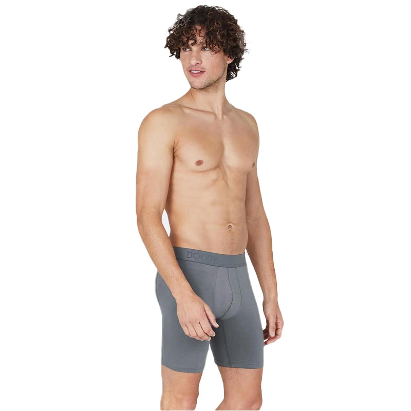 Classic boxers, with an eco-friendly upgrade! The Men’s Bamboo Long Boxers from Boody are made from organically-grown and naturally renewable bamboo. Lightweight and breathable, these boxers feature a splash of spandex for a stretchy fit. They have a double layer pouch for optimal support and flat offset side seams for extra comfort. Great for everyday-wear or for an active adventure!