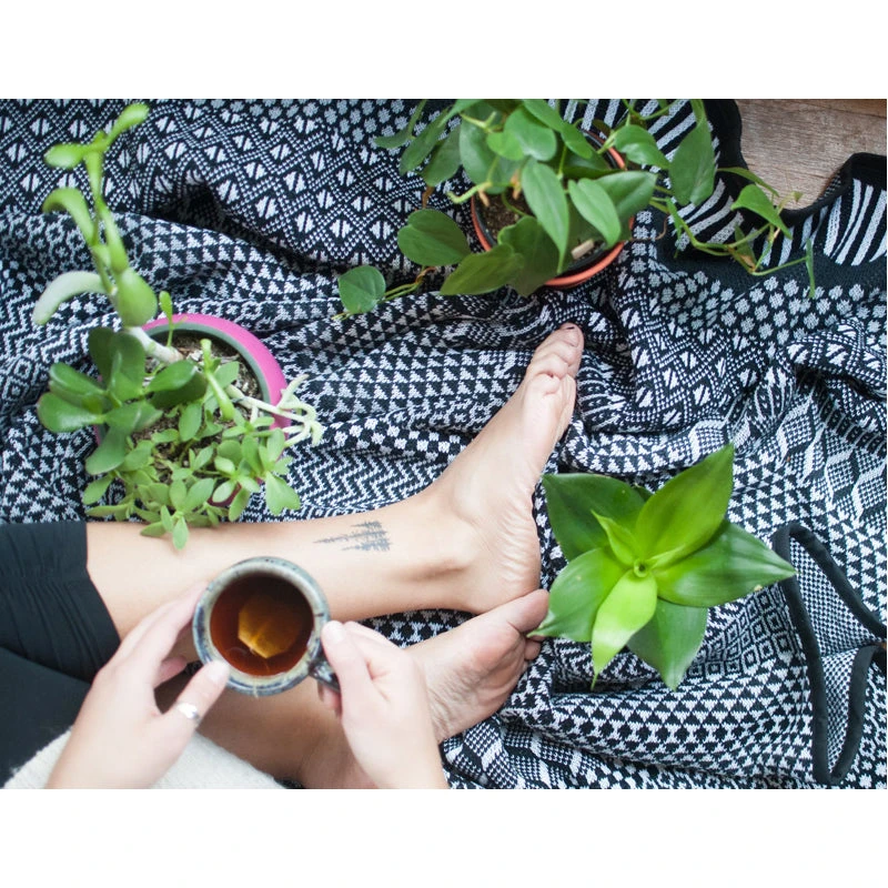 Cuddle up in a swaddle of sustainability with Solmate’s Midnight Recycled Cotton Blankets! Made from 55% recycled cotton with 45% recycled polyester, this warm blanket uses high-quality recycled yarn to keep you snug and cozy. Perfect for snuggling into the couch, cradling little ones, or even for a picnic–this tribal pattern blanket truly does it all!
