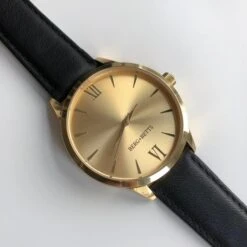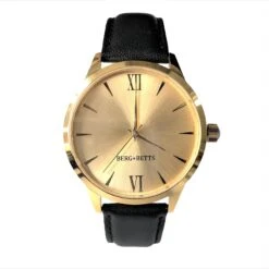 At BERG+BETTS we believe that you shouldn’t have to sacrifice style for sustainability. It is our mission to provide you with eco-friendly products that are sophisticated, responsible, and affordable.Buy less, but better and make the pieces you love last longer. The fashion industry is one of the largest waste producers in the world so you can rest assured that each purchase of a BERG+BETTS timepiece is you doing your part as a responsible consumer. If you consider yourself a timeless classic then this line is for you. Slightly smaller than our Original Collection at 38mm round, it features a mirrored gold stainless steel case, gold markers and a sustainable black leather band that was meticulously crafted from surplus leather that would have otherwise gone to waste.