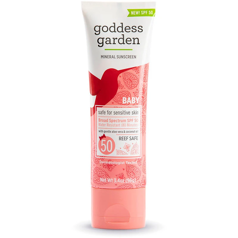 You can soak up the sun worry-free with Natural Baby Sunscreen SPF 50 by Goddess Garden! Made with plant-based ingredients and natural minerals, this wear-everywhere sunscreen provides powerful broad-spectrum SPF 50 coverage–with no added chemicals or synthetics. It goes on with a sheer, non-greasy application, and leaves behind the refreshing scent of essential oils. Plus, it’s certified organic, reef-safe, and biodegradable!