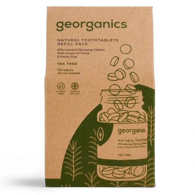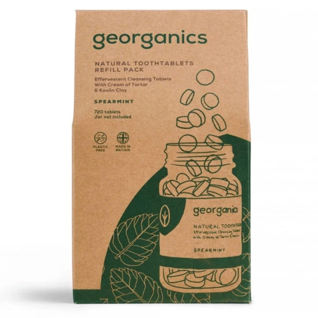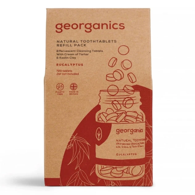 Kick that plastic toothpaste tube to the curb and make the switch to sustainability with the Natural Toothpaste Tablets from Georganics! Made from high-quality natural and organic ingredients free of fluoride, SLS, and glycerin, this product kills bacteria and promotes fresh breath and healthy teeth and gums. With a vegan and certified cruelty free formula, plus plastic free packaging, this toothpaste alternative is the perfect addition to your natural oral care routine. To use, chew 1 tablet in your mouth and let it dissolve. Brush as usual for 2 minutes. Spit out and rinse well.