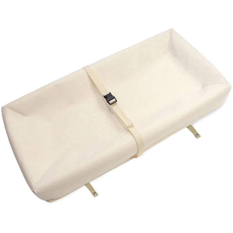 A deluxe, safe, and sustainable changing experience every single time, the Organic Cotton Changing Pad by Naturepedic will keep your babe’s skin healthy and happy every time they need a diaper change. The deluxe contoured designed pad is filled and fitted with organic cotton. Featuring a snap-screw design to easily secure to any dresser and Air-Coreโข technology for structural support. Also offers a child safety belt to keep your squirmy little one in place while changing. The waterproof surface is so pure that it meets food contact standards and wipes clean easily with a damp cloth. Allergy-friendly design is free from harmful chemicals and meets strict GREENGUARD certification standards.