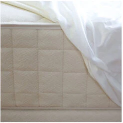 FACT: The average American will spend one third of their life in bed! This organic cotton waterproof mattress topper by Naturepedic will keep you and your family breathing healthy all night long. Made with two layers of jersey organic cotton fabric for maximum comfort and flexibility on top and bottom with an ultra-thin waterproof barrier in the center. Features DrySleepโข technology, which effectively blocks liquids from passing through to the mattress below. Some water vapor is allowed to escape, which helps provide a more comfortable sleep. Also blocks dust-mites from penetrating the mattress sleeping surface. Versatile design handles mattress depths from 9″ to 16″ with organic cotton skirt and full elastic perimeter.