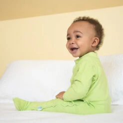 These super soft footie pajamas from i play., Inc. will keep baby warm and cozy! Made from organic cotton, they’re free from harmful chemicals like formaldehyde and azo compounds. As a result, they’ll feel great on baby’s sensitive skin. The footie pajamas are lightweight, stretchy and breathable, so baby will stay warm and comfortable all night long. The snaps close diagonally across the front, so parents can rest easy knowing changing is a breeze!
