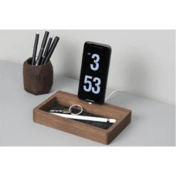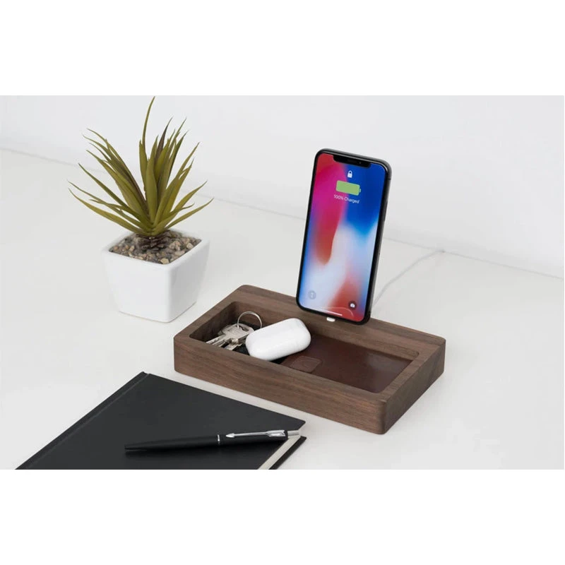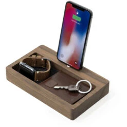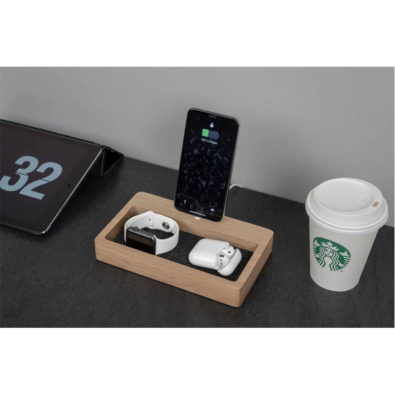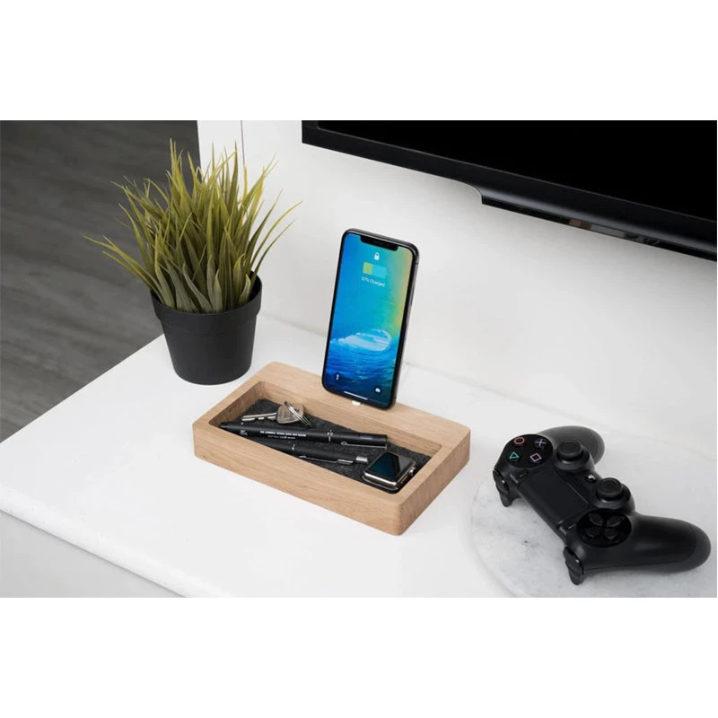 Keep your desk organized, and your space beautiful, with the Organizer Wooden iPhone Charging Dock from Oakywood! Handcrafted from FSC Certified solid oak or walnut wood, this iPhone charging dock keeps your tech securely in place and easy to locate โ all while charging it so you’re ready to grab it and go. There is micro-suction tape technology for your device to make it easy to put tech on and off the dock with just one hand, plus a large tray lined with woolen felt to hold keys, wallet, or other tech. Handpolished to have a natural wood shine, with a classic look, it also comes with a charging cable and is compatible with almost all phones cases. Plus, for every order, Oakywood will plant 1 tree!