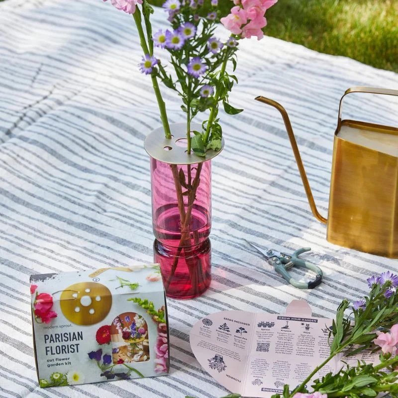 Take a trip around the world with these globally-inspired garden kits by Modern Sprout! Each kit features a curated selection of seeds, garden markers and a high quality accessory to transport you to the region. Parisian Florist – The City of Lights is known for its timeless beauty, from the banks of the Seine to the tree-lined Champs-รlysรฉes. This collection includes a brass vase topper and floral seed varieties evocative of quintessential Paris blooms and everything you need to try your hand at the art of French flower arranging.