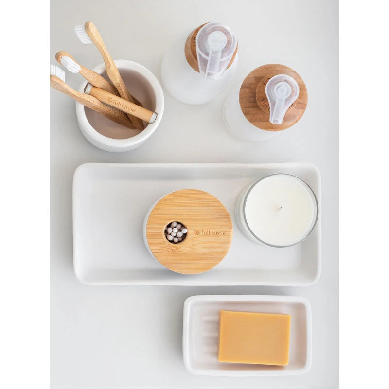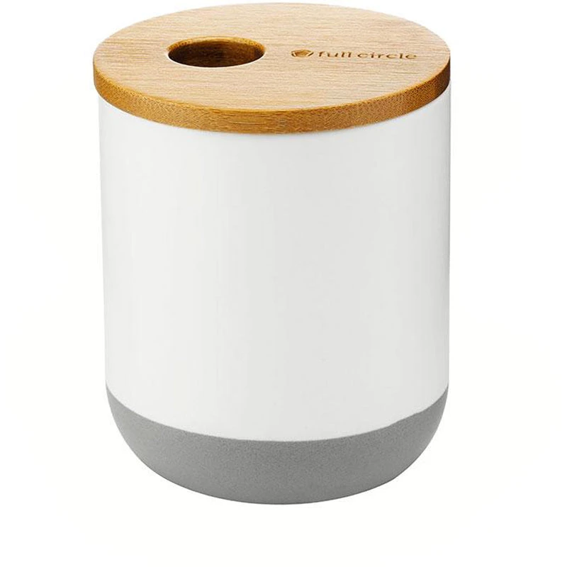 Give your bathroom an upgrade with the Pick Me Up Bathroom Canister from Full Circle Home. Although it features a bamboo lid with a specially designed access slot for cotton swabs, feel free to store any of your go-to bathroom necessities in this versatile and minimalist storage solution. Plus, you can feel good knowing that Full Circle is a Certified B Corp โ raising the bar for social and environmental accountability.