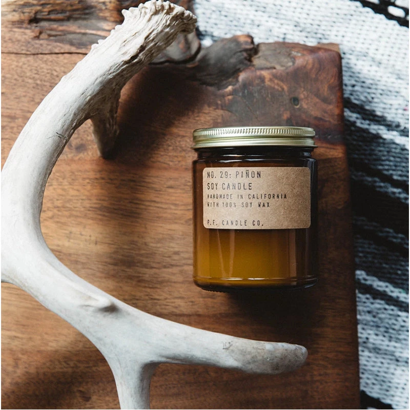 Bring light into your home with the Piñon Soy Candle from P.F. Candle Company! Made from 100% vegan and non-toxic soy wax with scents of piñon logs, cedar, and vanilla, these candles are hand-poured into apothecary inspired glass amber jars with a Kraft paper label and brass lid. Great for dressers, countertops, nightstands, and desks alike, this gift-able soy candle is paraben free, plastic free, and never tested on animals. Get one for yourself, and a friend!
