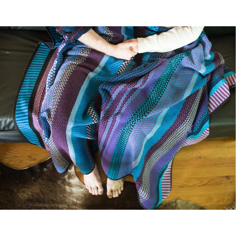 Cuddle up in a swaddle of sustainability with Solmate’s Raspberry Recycled Cotton Blankets! Made from 55% recycled cotton with 45% recycled polyester, this warm blanket uses high-quality recycled yarn to keep you snug and cozy. Perfect for snuggling into the couch, cradling little ones, or even for a picnic–this tribal pattern blanket truly does it all!