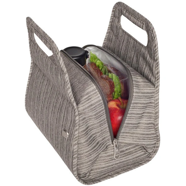 Never get “hangry” while traveling again thanks to the unqiue combination of lunch bag and purse in Haiku’s Repast Insulated Lunch Bag. This fully insulated and water-resistant tote features an easy-to-clean PEVA lined interior, secure zip closure, and padded carry handles to make traveling with snacks a breeze. It’s roomy enough to fit a six-pack, yet snaps flat for easy storage. So say goodbye to your brown bag lunch, and hello to a perfectly prepared mid-day meal!
