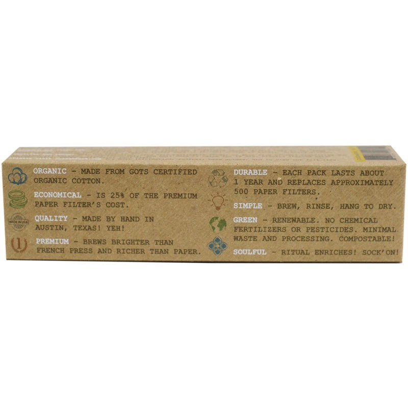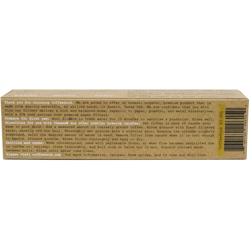 After tasting a cup of coffee made using the Reusable Chemex Filter from CoffeeSock, your kettle wonโt be the only one thatโs singing. Made to fit your Chemex filter exactly, each durable organic cotton reusable coffee filter lasts for about a year and provides a robust, crisp, and flavorful profile without the paper filter taste or the french press acidity. Every CoffeeSock filter is handmade in the USA from GOTS Certified Organic Cotton by a fun-loving crew of coffee fanatics.