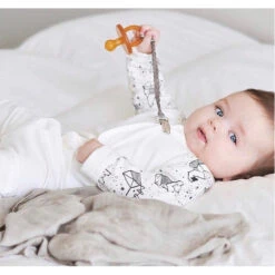 Say goodbye to yucky plastic pacifiers, and hello to a new way to take care of baby. Ecopiggy’s 3 pack of Round Natural Pacifiers are sustainably made from 100% natural rubber, a material that’s durable โ yet soft and gentle. The round shield lightly touches your child’s nose, simulating the feel of natural breastfeeding. Designed in one single-piece, these pacifiers contain no choking hazards and are BPA, phthalate, PVC, and paraben-free. This round style is great for helping little ones latch, as it mimics a natural feeding experience. Plus, they’re hand-inspected and packaged in the USA. That’s a happy Earth and a happy family!