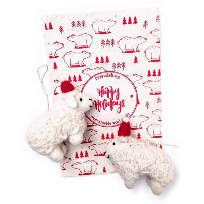 Deck the halls with the Santa’s Sheep Wool Ornaments 2pk from Friendsheep Wool! Made from 100% organic and cruelty-free certified New Zealand Wool, this holiday decor essential is reusable for years of use, and completely compostable at the end of its life. Friendsheep also uses azo-free dyes that are eco-friendly and non-toxic. Plus, they are handmade in Nepal by women with disabilities who are paid a fair wage and operate in safe, equitable working conditions.