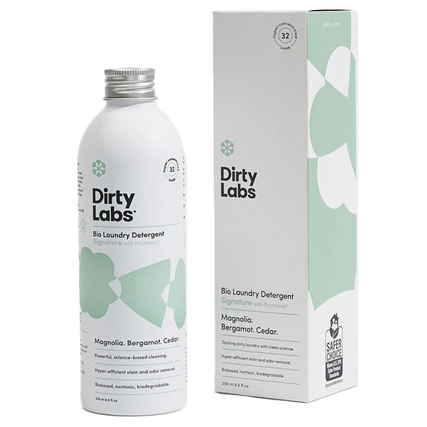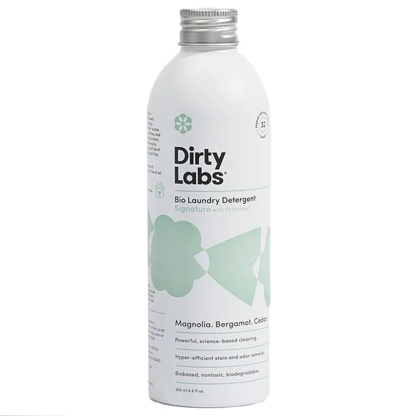 Get all your dirty, smelly clothes ultra-clean with the Signature Bio Liquid Laundry Detergent from Dirty Labs! Their Phytolase cleaning technology uses the power of natural enzymes to actively clean even the dirtiest clothing. These enzymes target and remove hard to treat stains and stubborn odors. The signature scent features subtle notes of magnolia, bergamot, and cedar and the biobased formula is readily biodegradable, safe for sensitive skin, and free of dyes, sulfates, parabens, and all California Prop. 65 chemicals and EU-listed fragrance allergens. Packaged in an aluminum bottle, the hyper-concentrated liquid detergent is optimized for 32 standard loads of laundry and compatible with both HE and traditional washers. It’s even septic safe! Use the reusable silicone beaker to measure detergent and simply toss in with your laundry.