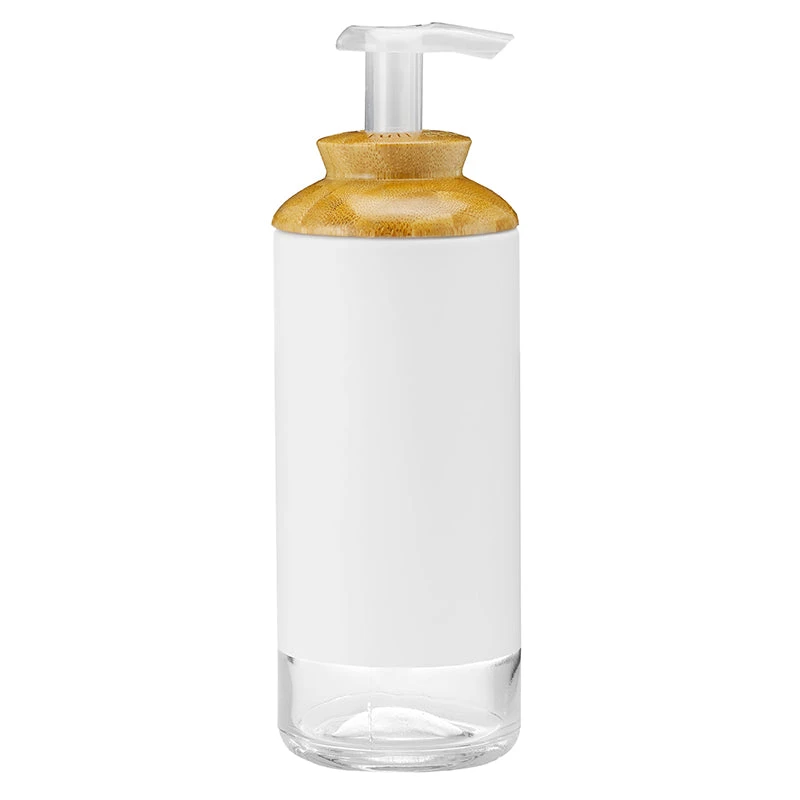 Stylishly suds up with this soap dispenser from Full Circle Home! The thoughtfully designed sleek base shows off a sleek white body that will match any dรฉcor. But they didn’t stop there. The clear recycled glass bottom allows you to easily tell when you’re running low and need a refill!