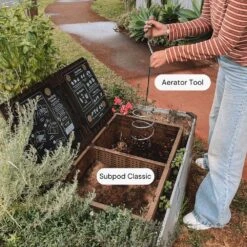 Composting is made effortless with Subpod – the revolutionary in-ground compost bin! No more hefty bins, towering piles, or troublesome tumblers! The Subpod offers a simple and efficient solution to break down organic waste and food scraps into nutrient-packed compost, enabling your plants to flourish. Worms and microbes collaborate inside the bin to quickly and silently transform your food waste into rich soil.