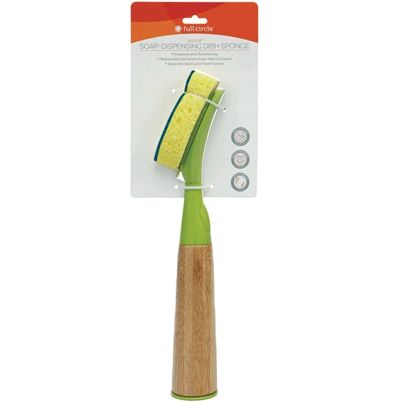 Down in the dumps about dish duty? Not anymore! Full Circle Home’s Suds Up Dish Sponge lets you dispense your favorite soap from it’s unique plant-based sponge head, making cleaning a breeze. The bamboo handle is paired with a replaceable cellulose sponge head that’s super-absorbant, but dries in a flash. When you’re done, just stand it up on it flat bottom handle for easy storage!