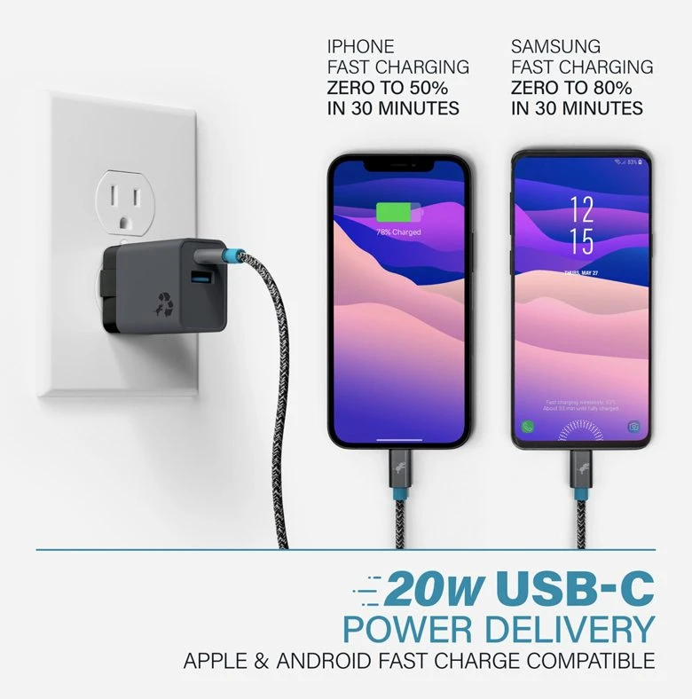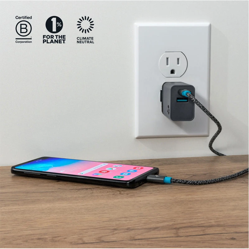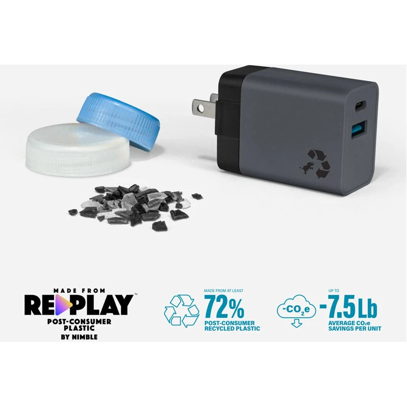 Simply plug and play with the WALLY Mini Wall Charger from Nimble! Featuring dual USB-C and USB-A ports, the WALLY Mini powers your battery with up to 20w of fast charging. With housing made from RePlay™ Certified Recycled Plastic, this’ll be the last wall adapter you’ll need for your smartphone and tablets! Plus, like all Nimble Products, this charging pad is Climate Neutral Certified and supports environmental non-profits through 1% for the Planet!