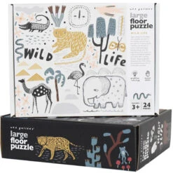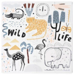 Celebrate the diversity of nature and encourage learning through play with the Wild Life Floor Puzzle by Wee Gallery! This gorgeous puzzle is the perfect cozy indoor activity for kiddos and inspires cognitive development and the use of fine motor skills. Printed with soy-based inks, the artistic designs and drawings are sure to enchant your little one and spark fun conversations about bears, tigers, and other outdoor dwellers. Recommended for children 3 years and up.